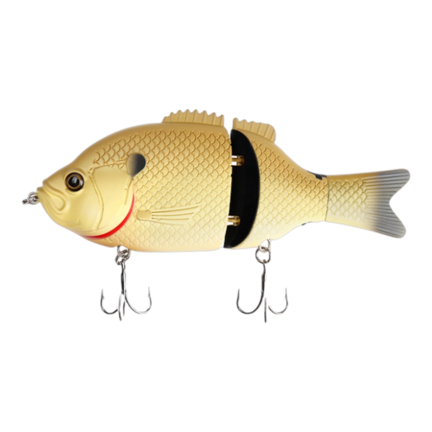 A must-have for all big bait enthusiasts, the Baitsanity Explorer Gill Glide Bait delivers an ultra-realistic bluegill profile and an unrivaled action that big bass simply can’t resist. Molded with an anatomically correct profile and details, the Baitsanity Explorer Gill Glide Bait features a single joint construction, which generates a wide side-to-side “S” swimming action that draws the curiosity of fish and triggers ferocious strikes. It also features silicone attachments on the inside of the joints to reduce noise as it glides back and forth for a more natural presentation that will fool even the most discerning of bass. Adding to its realism, the 3D scales feature a three-level grain design, which is a progression of texturing that adds more depth to make the bait look more lifelike.