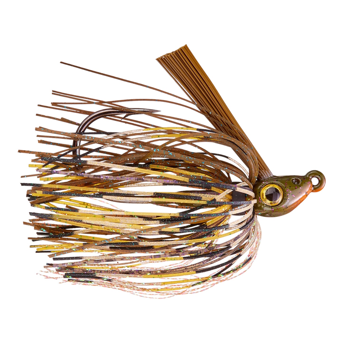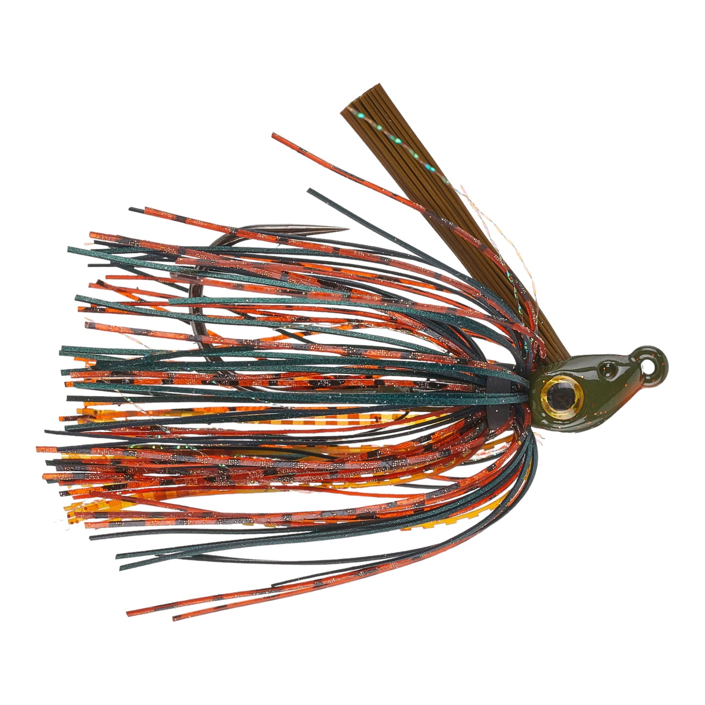 The perfect head for skipping & swimming, a custom 5/0 Gamakatsu Siwash No-Flex hook, oversized molded dual keeper, heavy fiber weedguard make up the backbone of the jig.