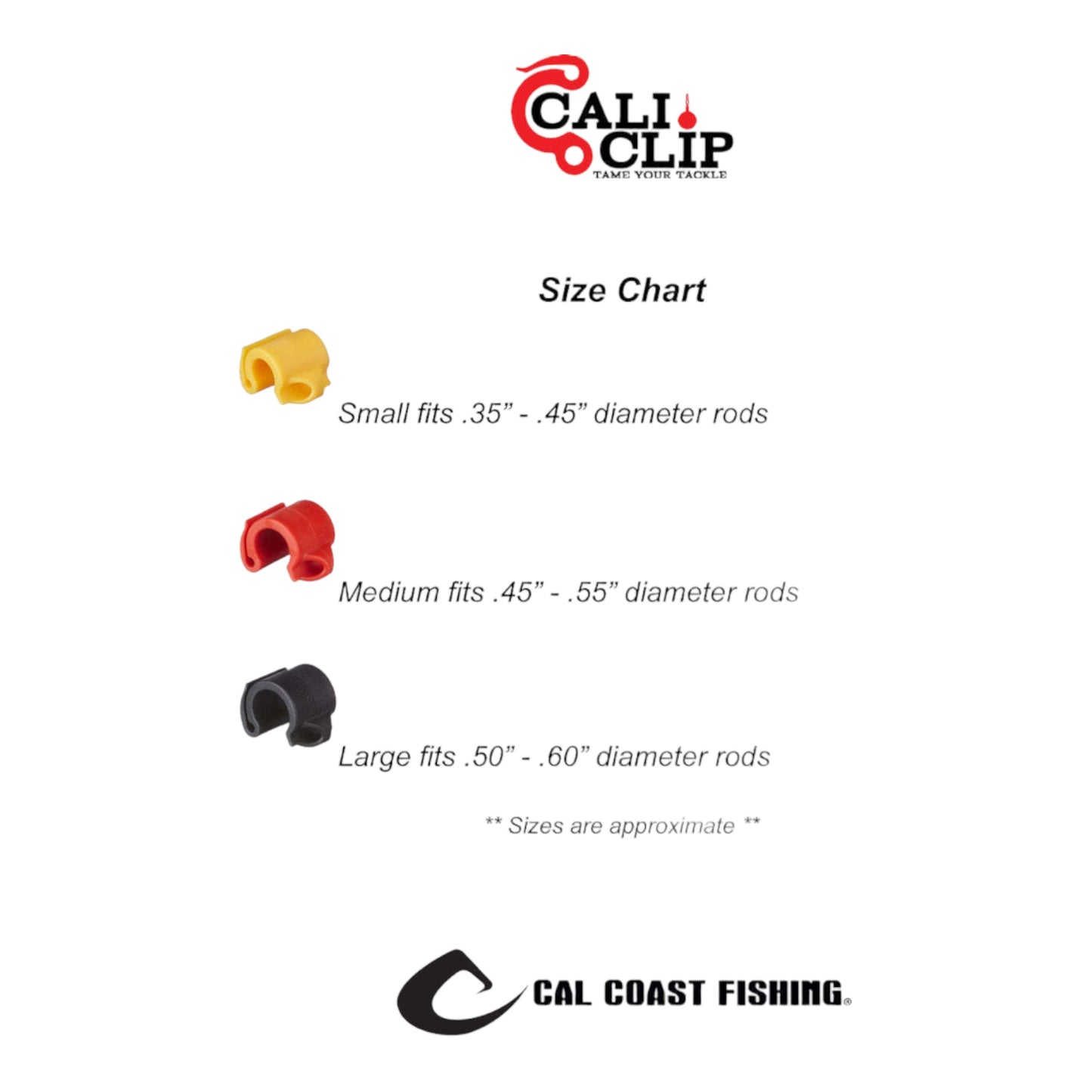 The Cali Clip also features a sturdy hook keeper to secure your swim jigs, Texas rigs and other lures securely to your rod. It is important to choose the right size clip for your rod and you should choose the correct size clip before installing it.