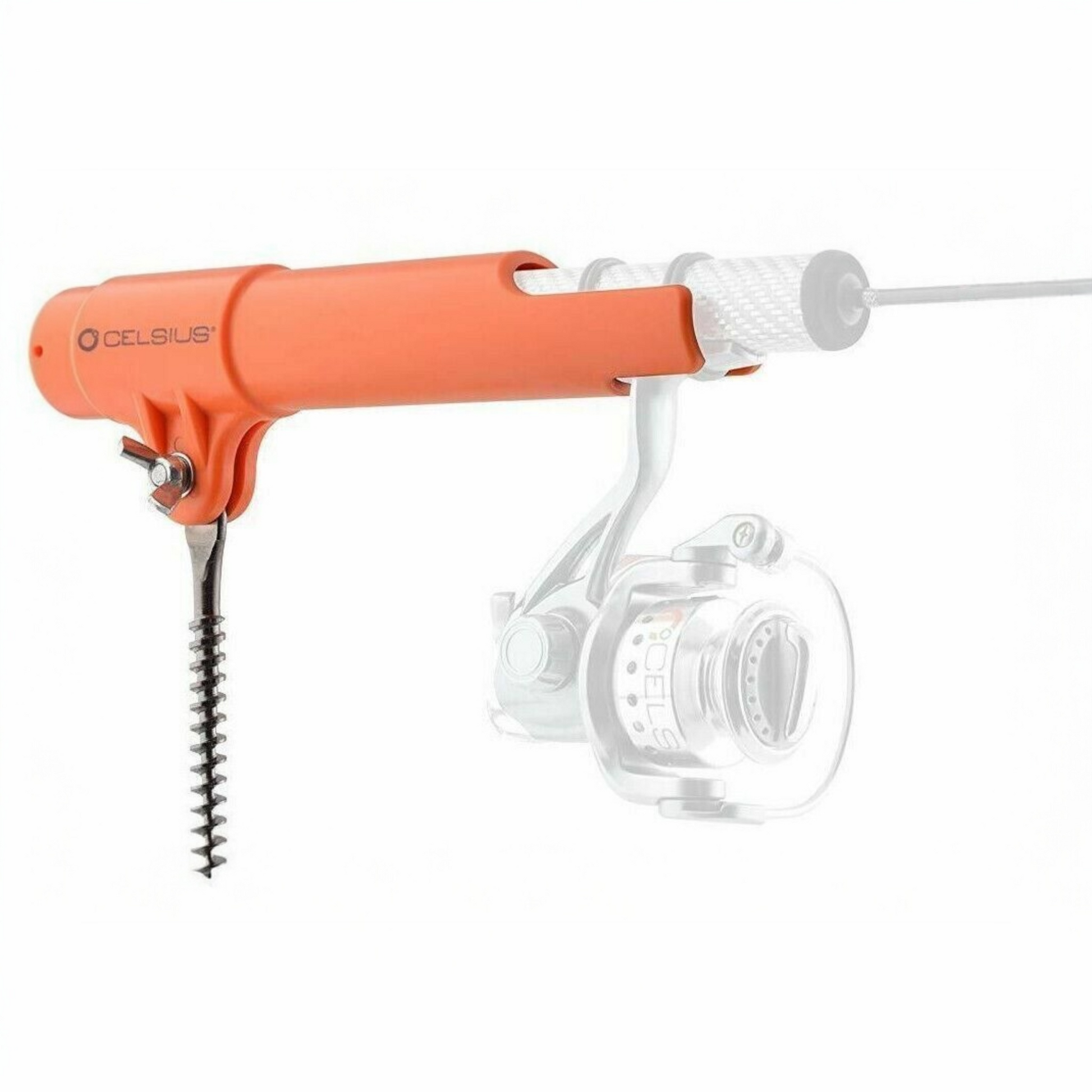 A strong, stainless-steel, black nickel plated screw anchors the holder into the ice for a solid base and angle of the holder can be adjusted to suit your desired position.