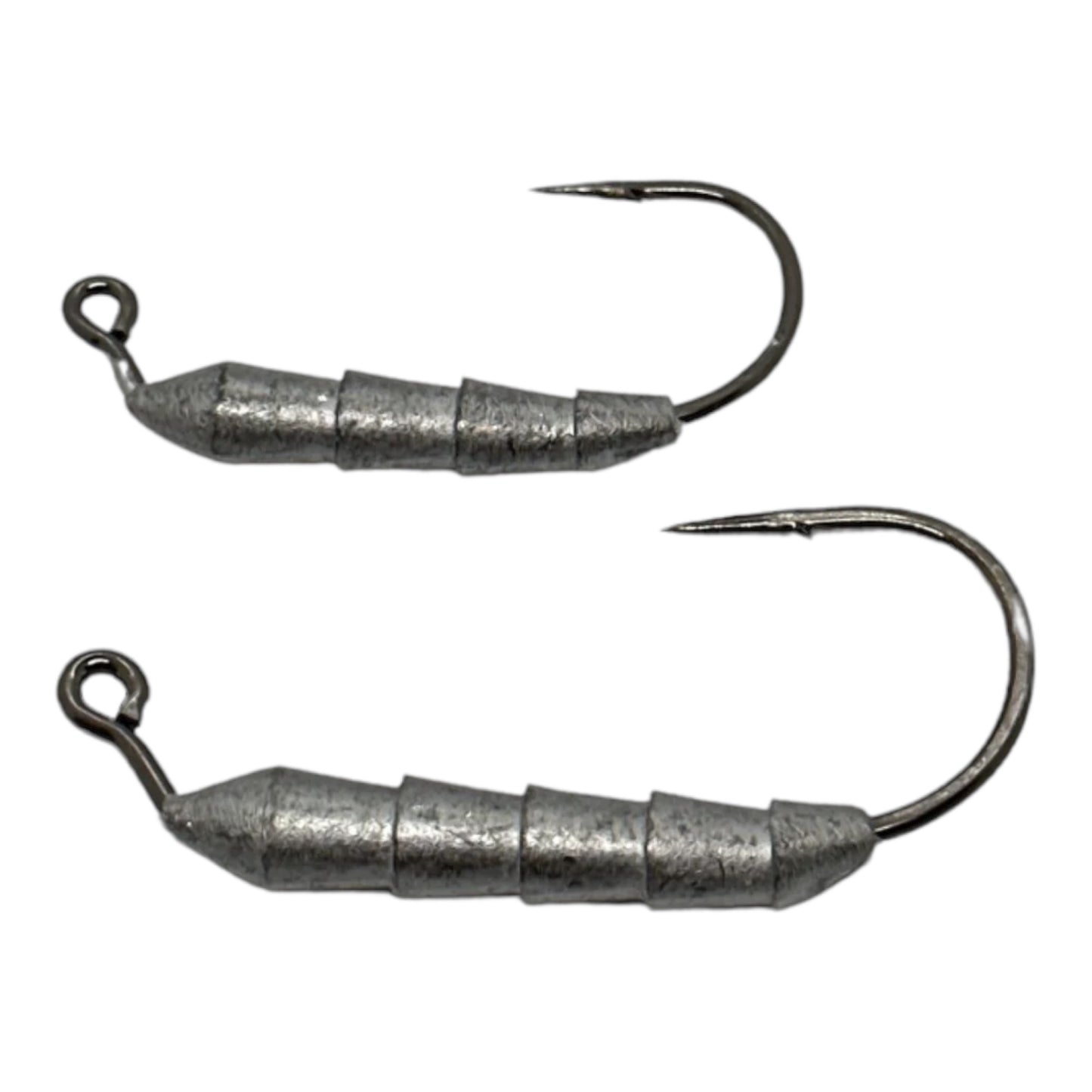 - Decreases the amount of lost fish when compared to traditional jig heads, which provide increased leverage for the fish to shake the hook with weight at the front of the jig head