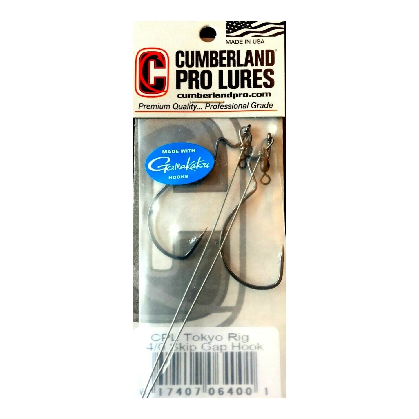The Cumberland Pro Tokyo Rig pairs with an almost endless range of soft plastics and allows anglers to explore just as many types of terrain. Built around a solid, Gamakatsu Skip Gap Hook, this unique patent pending hook is designed to hold soft plastics firmly in place so that no matter how hard you throw it, the plastic bait stays put.