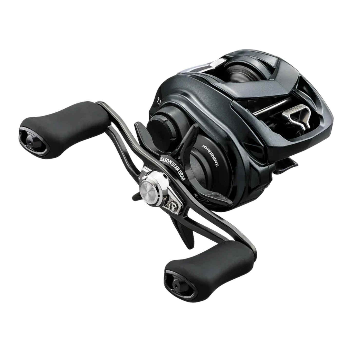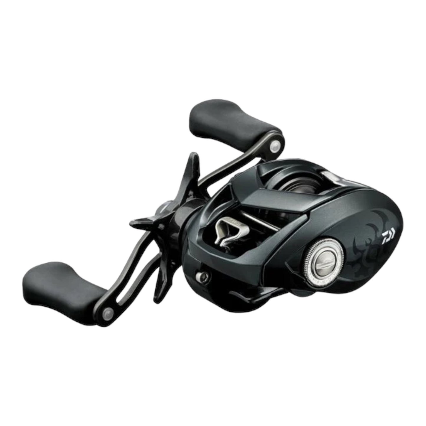 It features an aluminum frame, aluminum handle sideplate, and is extremely palmable. With regards to gearing, it also contains Daiwa’s Hyper Drive Design™ gearing system for very smooth cranking and fluid-like rotation.