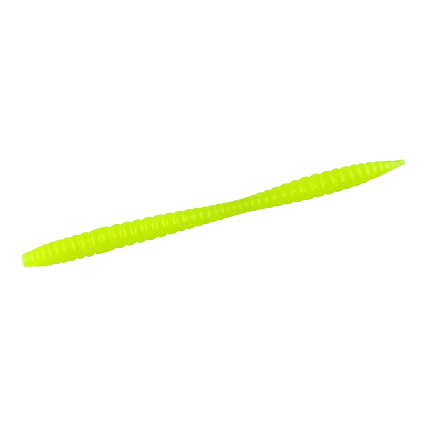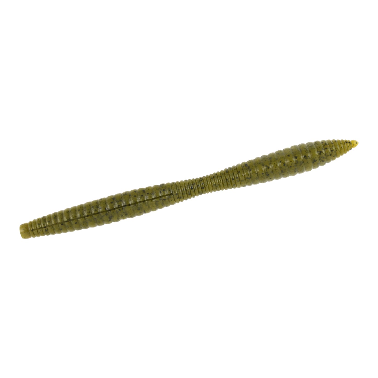 At the tip of the body where the hook pierces, the non-salt material has increased hardness which greatly reduces tearing keeping the hook point in the worm longer.