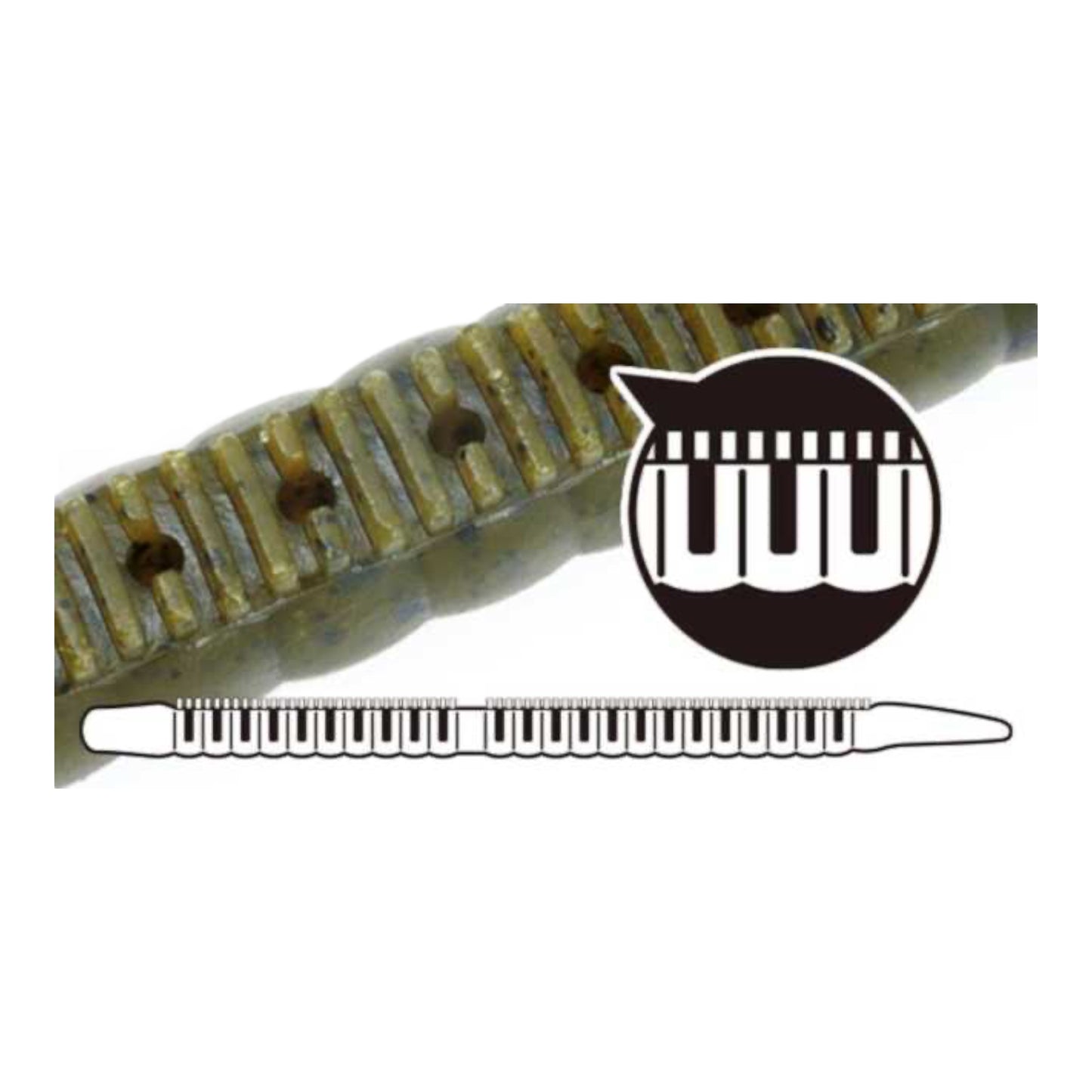 Featuring embedded air holes throughout the entire body to boost flexibility and buoyancy, the Deps Kincoo Air Worm uses the magic of air to breathe life into this big-bodied worm and produce erratic action with the addition of bubbles. Built with small fine ribs to create unpredictable action movements with minimal input, the Kincoo Air Worm appears like an easy meal with a long knife tail that vibrates enticingly as it falls through the water column to trigger the lateral line of curious bass.