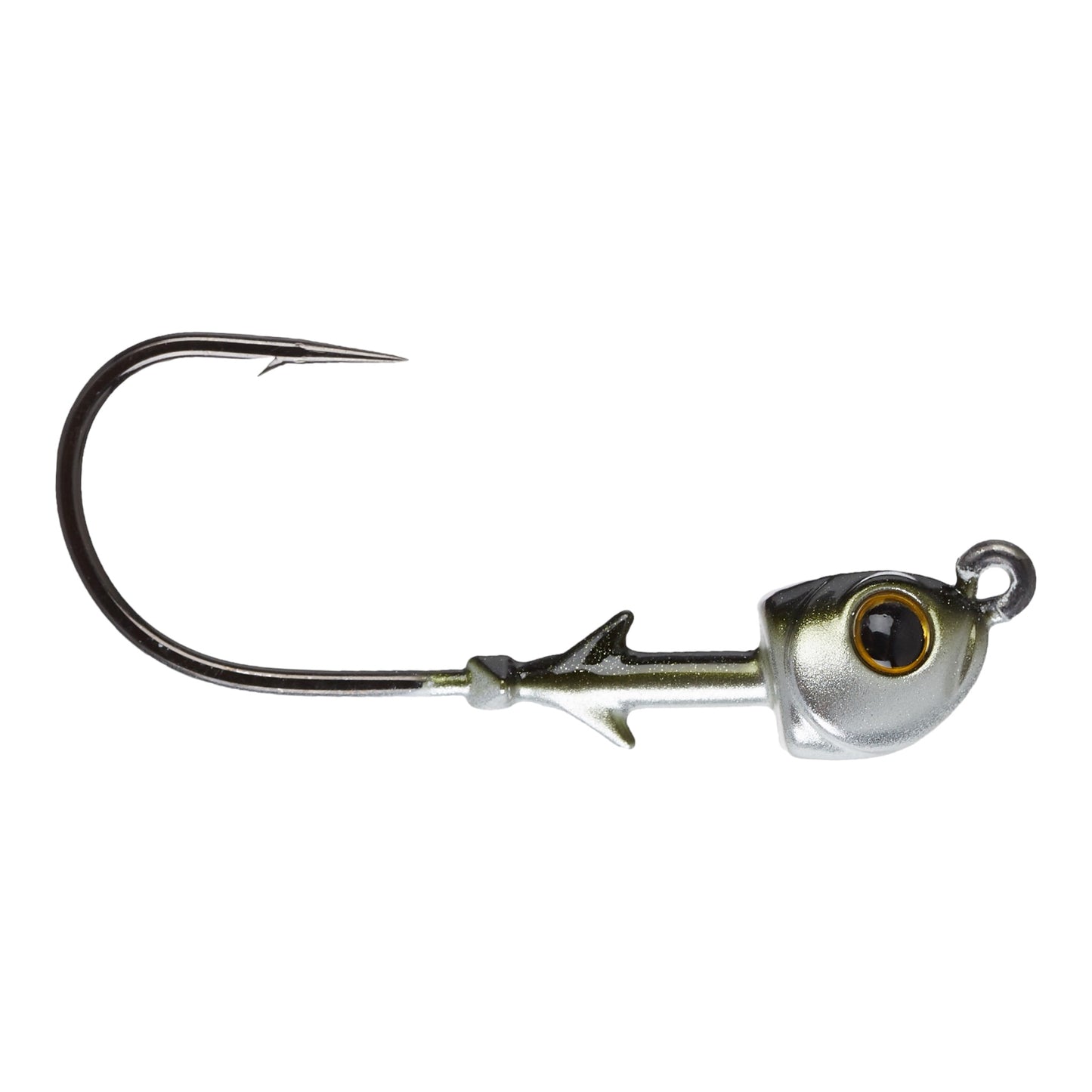 Featuring a shad shaped head design that provides a more natural profile, the head is also molded with a rounded chin, which rolls and deflects off rocks and other hard structures very well to prevent snagging.