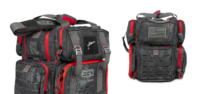 The EGO Kryptek Tactical Tackle Box Shoulder Bag will give you an aggressive look on and off the water. The product features multiple storage pockets, laser-cut molle loops for external tool management, Kryptek camo technology, and four clear tackle trays. Constructed with extra durable1000 denier nylon fabric and PVC coated backing for a measure of water resistance, these bags will endure the toughest conditions on and off the water.