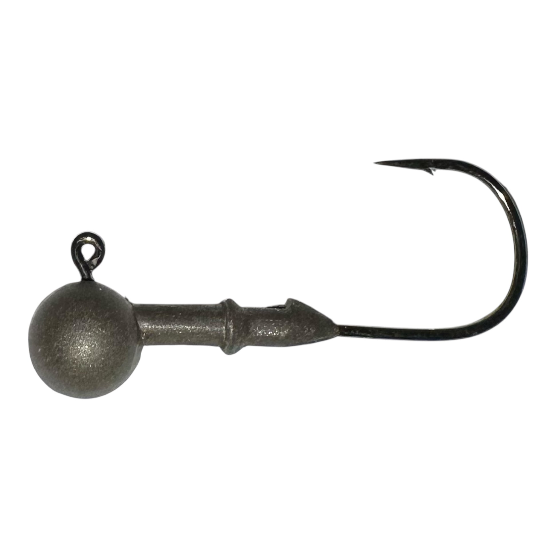 The Rocker Head tungsten jighead is matte finish ball shaped head and the hook placement allows the head to roll and produce the action on your bait and the double razor-sharp mustard hook penetrates with ease.