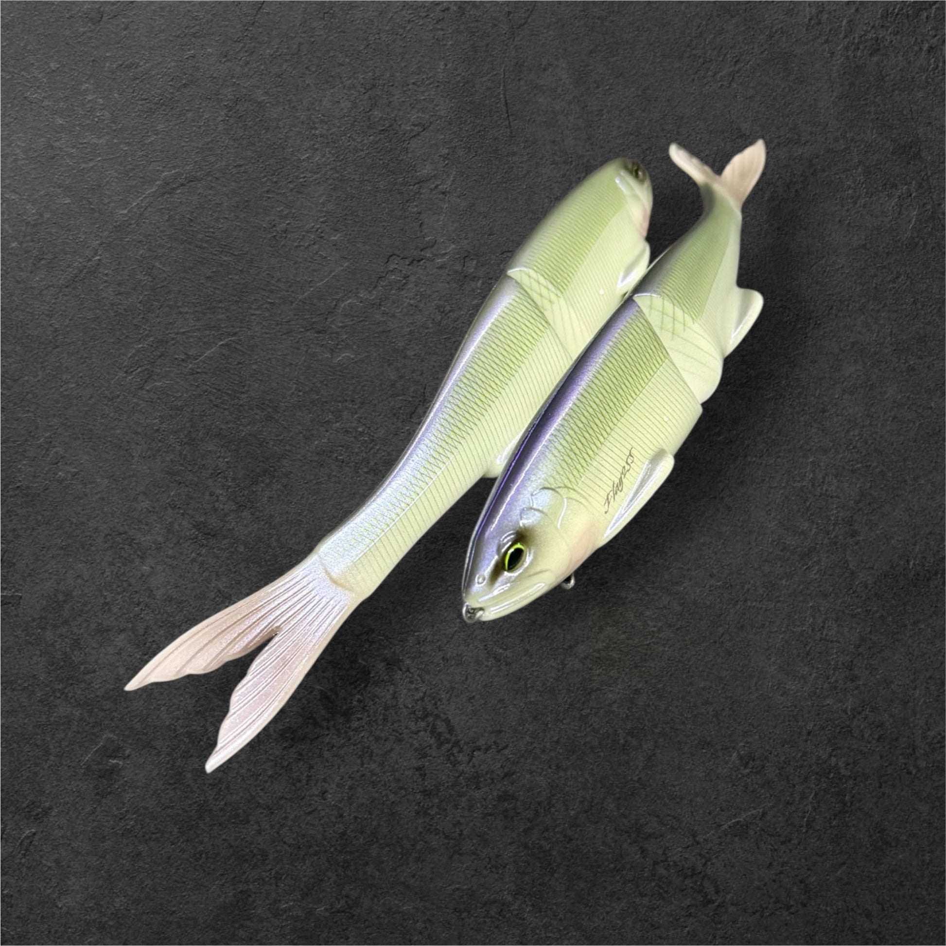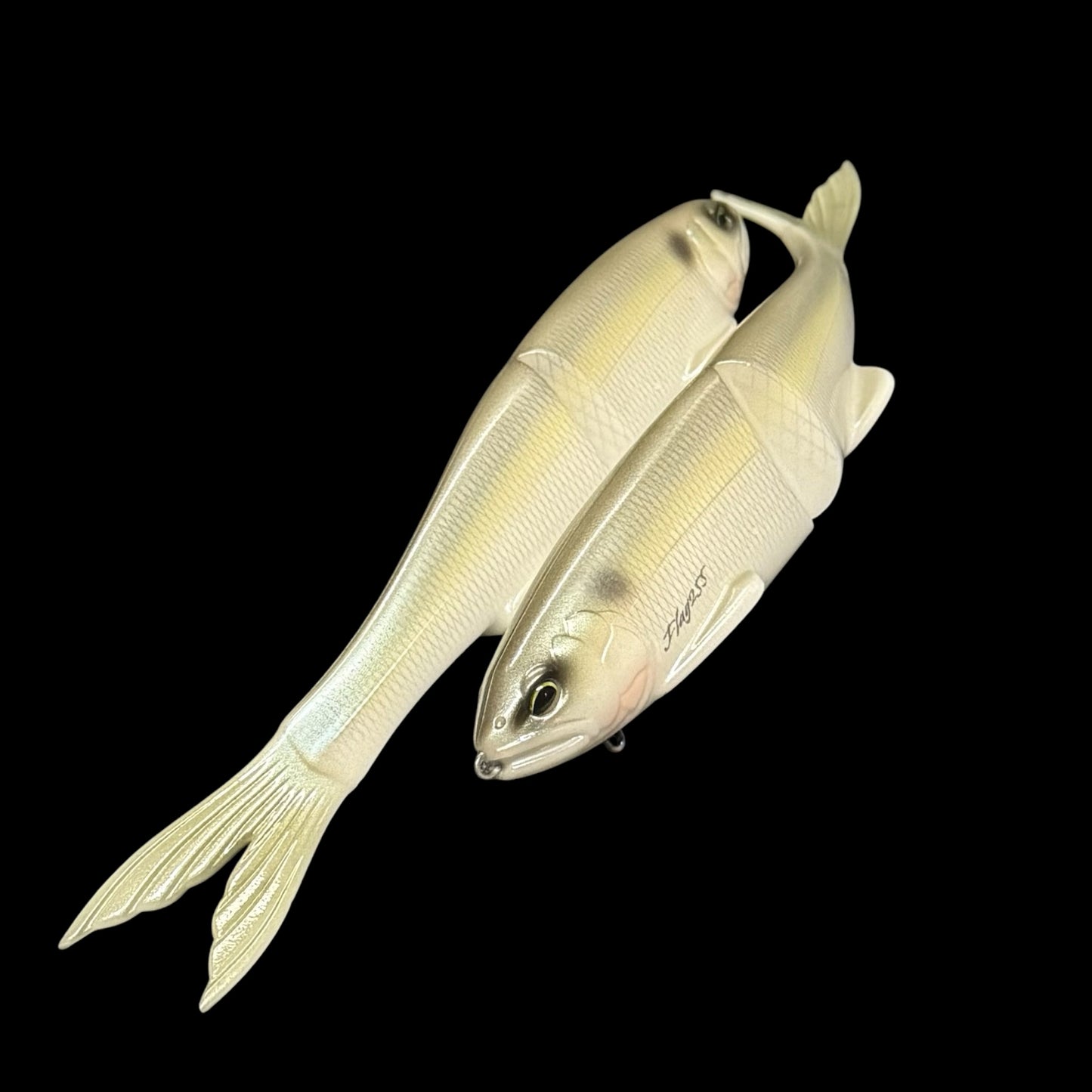 Designed with a long thin tail and two sets of belly fins to stabilize its erratic S-shaped action, the Grow Design Works Flag 255 Soft Glide Bait earned its name by generating an enticing shimmy throughout its entire body that mimics a flag fluttering in the wind. Built with a soft-bodied construction that supports a variety of flexible movements, this unique glide bait allows the angler to easily control and manipulate the action through simple operation of the fishing reel.