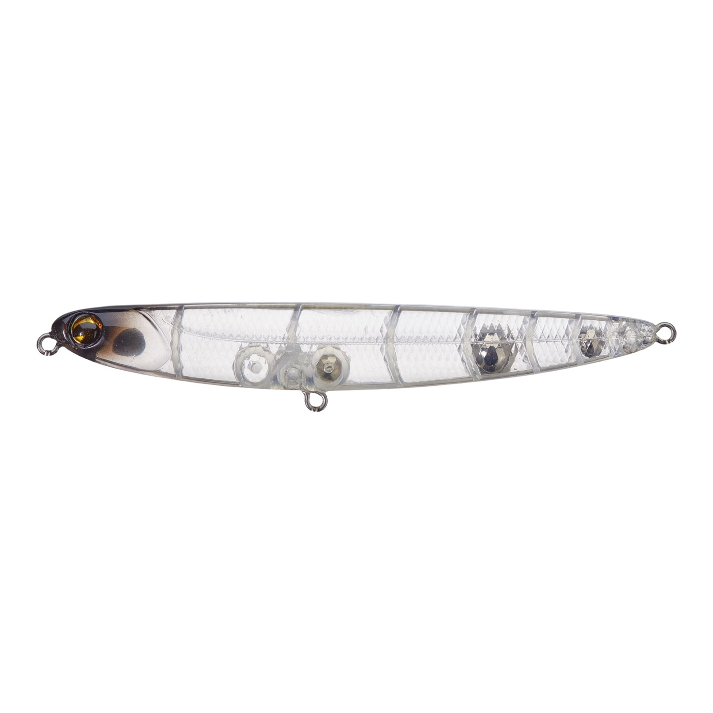 The ima Skimmer is unique among hard plastic topwater stickbaits in that only the ima Skimmer has the slender body shape of a 5″ soft plastic stickbait. This slim profile has proven to be one of the most appealing bass lure shapes ever. There’s a whole lot to be said simply for this slender profile and silhouette, and the ima Skimmer is really the only topwater hardbait that has it.