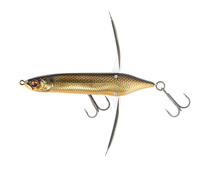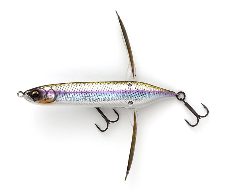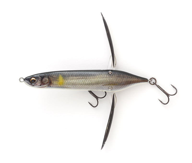 Over a year of testing and tuning to get just right, the Imakatsu Aventa Crawler Vazelle Topwater is the smallest and fastest in the Aventa Crawler series. Built to mimic a struggling baitfish on the surface trying to flee from predators, the Imakatsu Aventa Crawler Vazelle Topwater features a highly realistic shad body that is complemented by ultra-thin, high strength folding wings that are mounted to the rear of the bait, which creates a unique wobbling action of the surface during a steady retrieve. The wings also collapse inward during the cast for a more aerodynamic profile so anglers can make long, accurate casts at schooling fish or pinpoint targets.