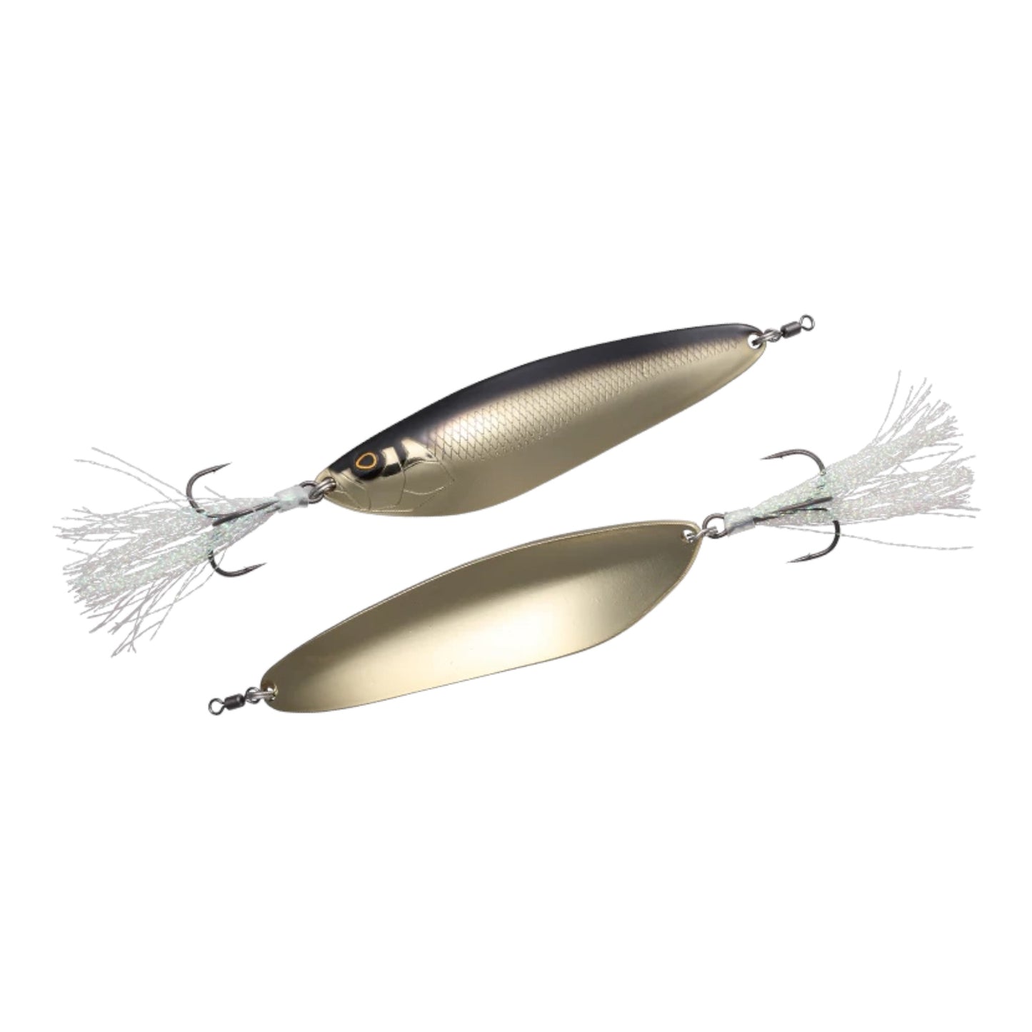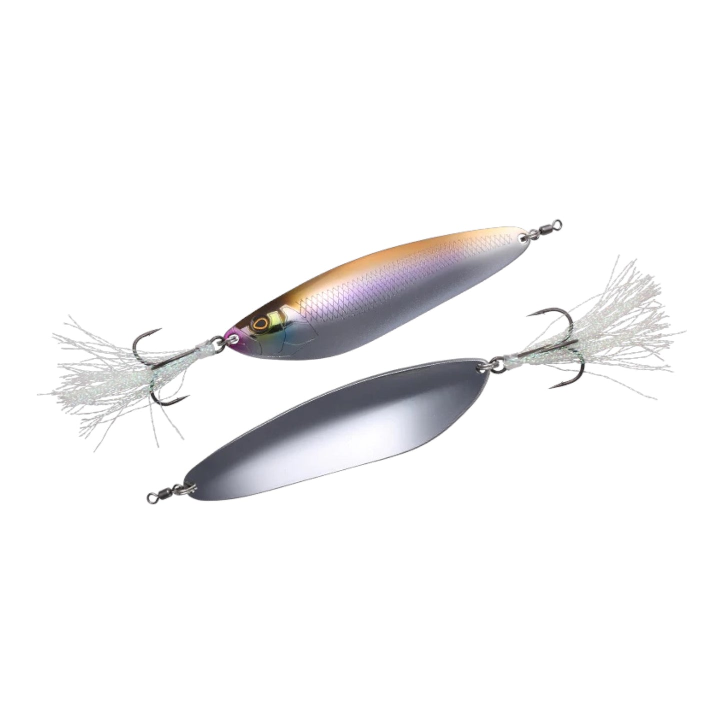 Even when no tension is applied to the line, the Counter Back Spoon delivers a spontaneous swift backslide fall, as the cup of the blade and body thickness produce an exquisitely angled backslide movement. Finished with a ball-bearing swivel and a feathered treble hook, the Jackall Counter Back Spoon is available in a variety of brilliant color patterns painted on both sides to create a less flashy and more natural appearance.