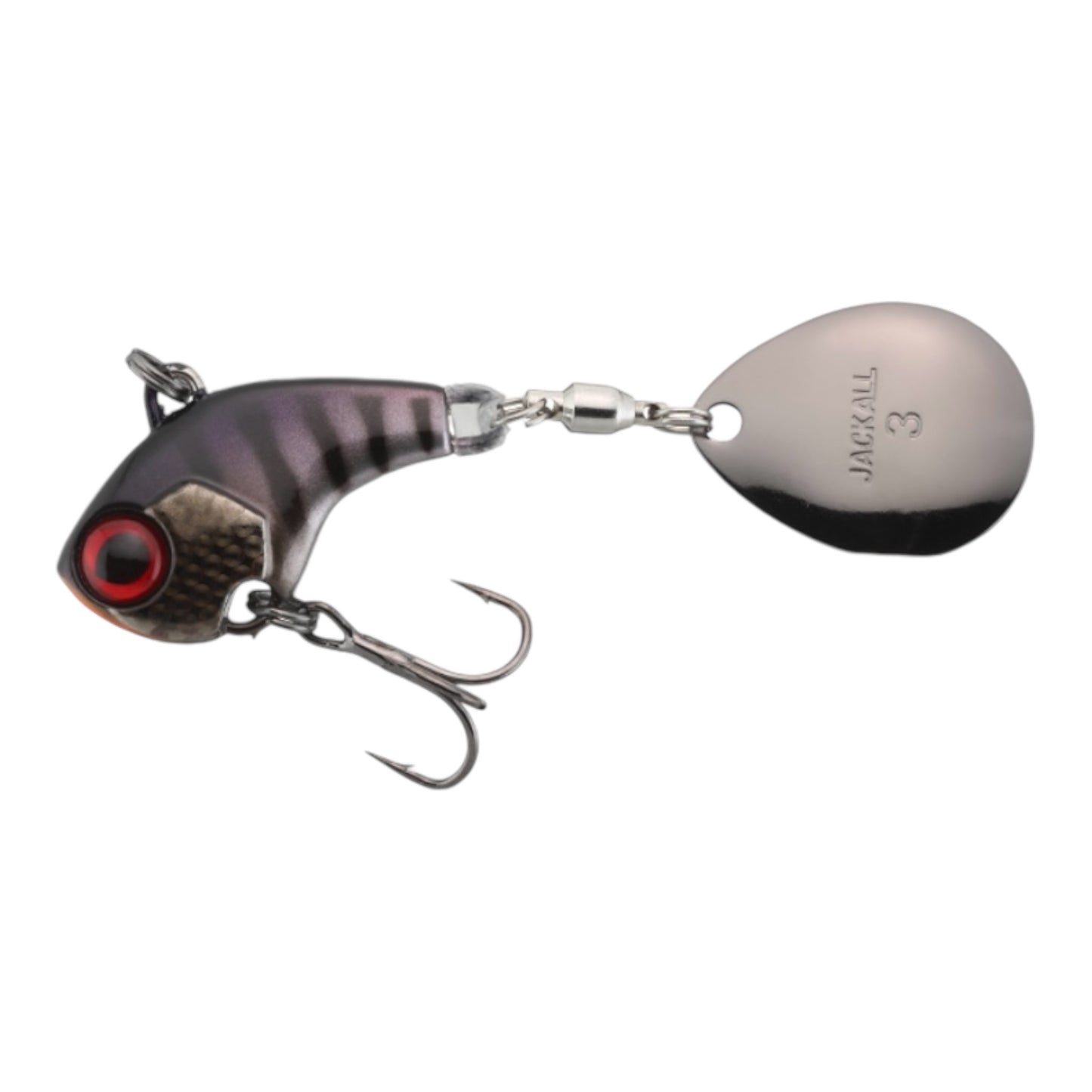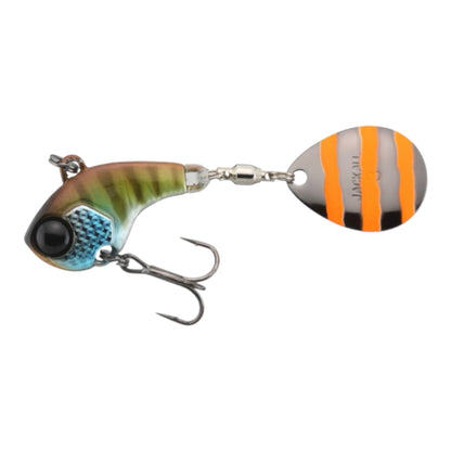 The Jackall Deracoup Tail Spinner was designed to be fished year-round from shore or boat and its compact size mimics baitfish and minnows even with the small profile, anglers can still cast with ease due its solid lead design.