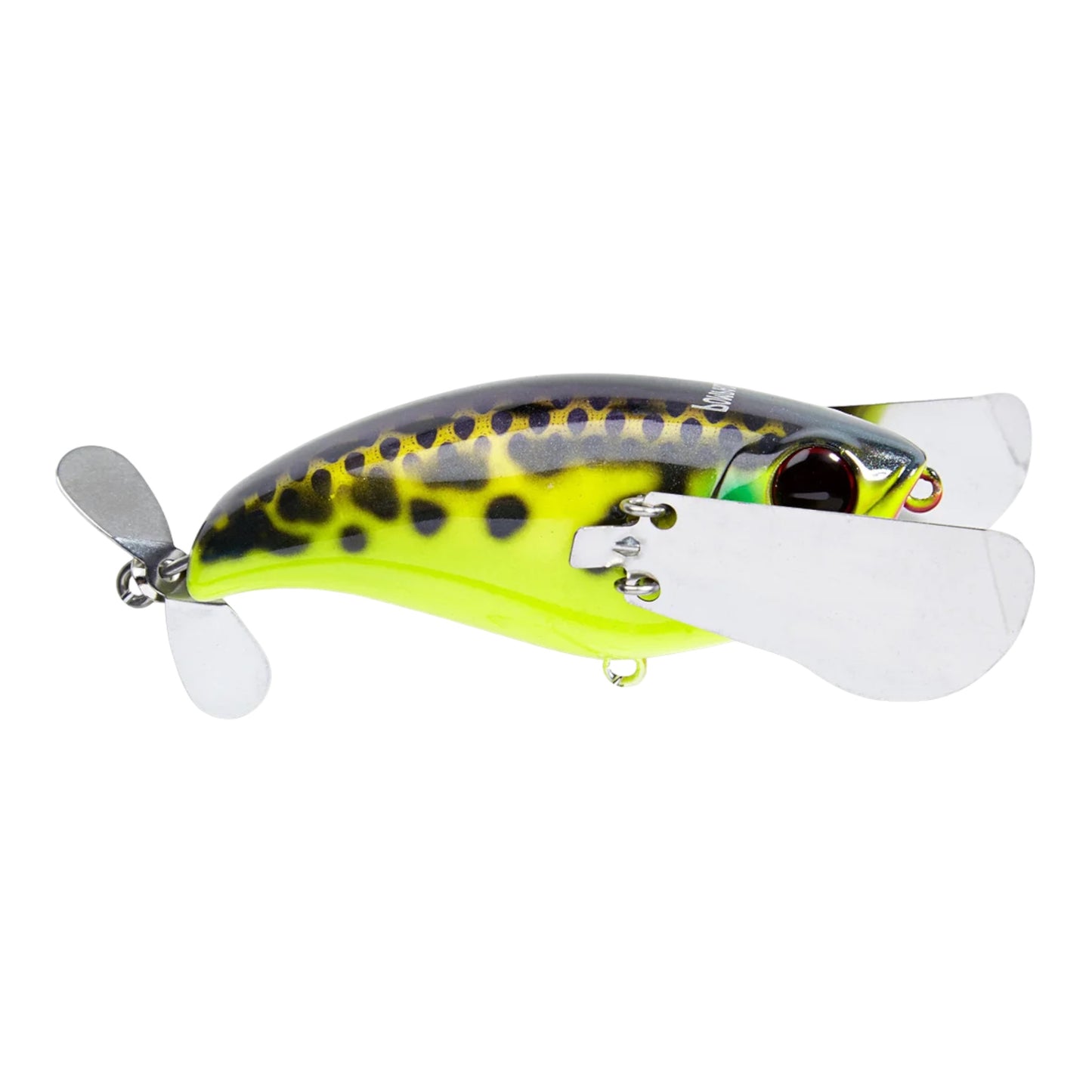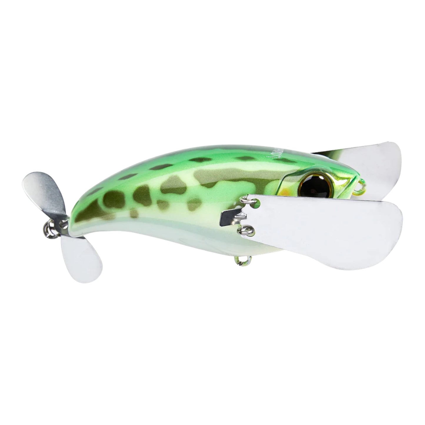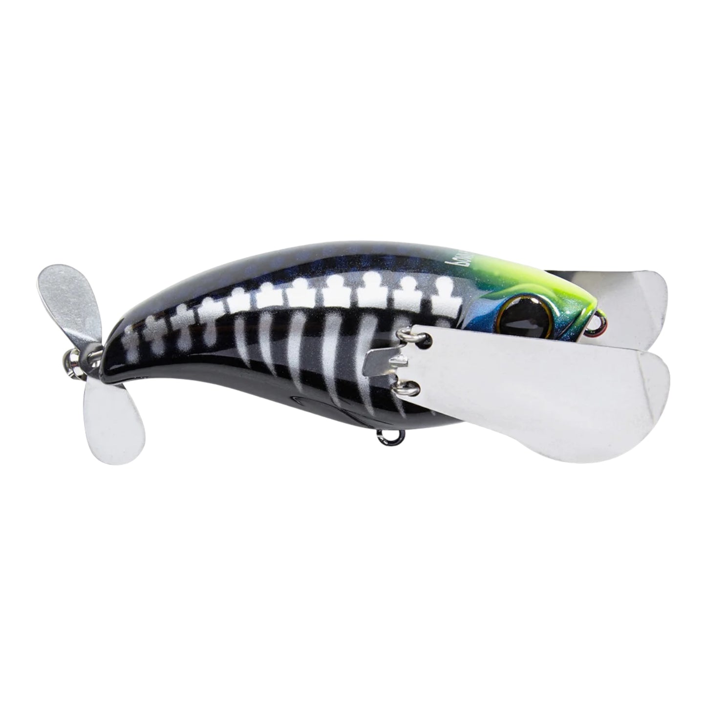 At the rear, the Jackall Pompadour features a free-swinging hook holder and a prop blade that generate a heavy gurgling attraction. This forward-thinking design not only creates additional disturbance, but it also eliminates the possibility of a bass using the lure as leverage to spit the hook.Offered in a number of classic color ways, the Jackall Pompadour has a big presence that will draws even bigger bites.