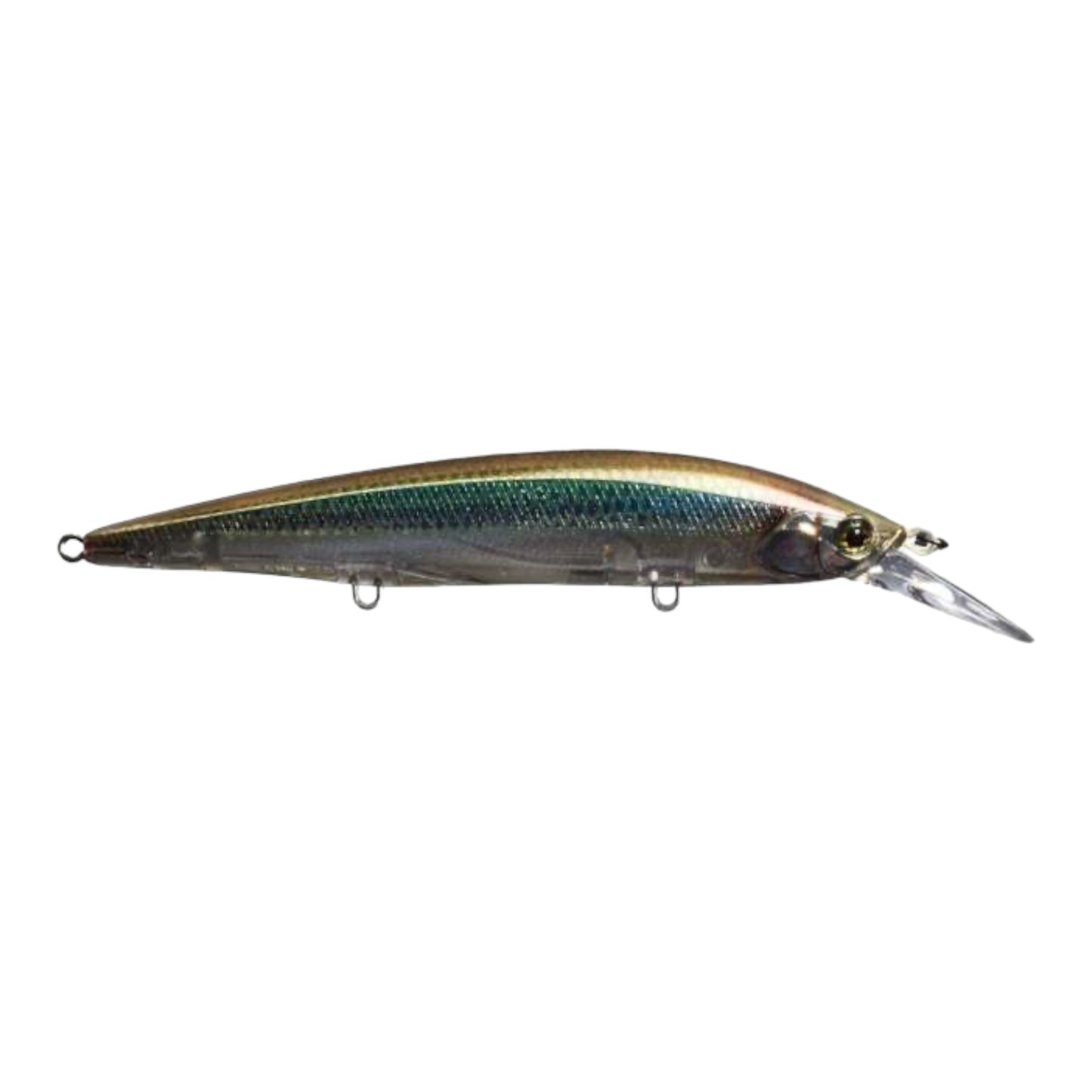 Engineered with advanced "TG Zero Friction" weight transfer system, the Rerange Jerkbait features a fluororesin covered tungsten weight which slides from end-to-end causing the Rerange to make a high pitch rolling action as well as extend casting distance.