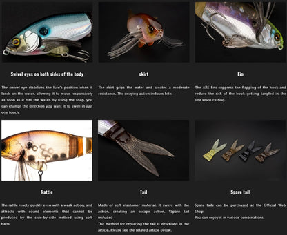 Made of soft elastomer material. It sways with the action, creating an escape action. *Spare tail included