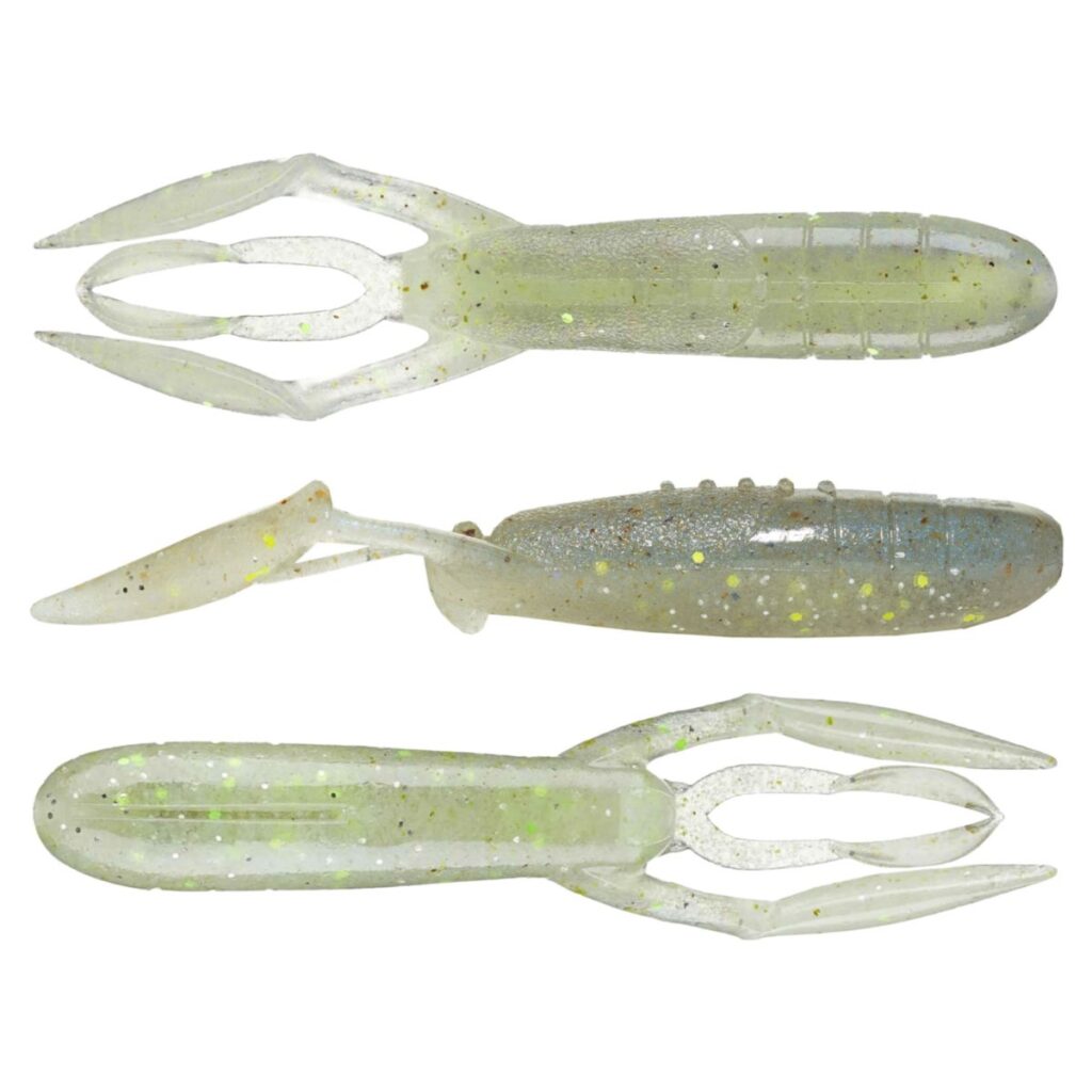 In addition to the unique construction and gliding capabilities, the Keitech Glide Camaron is also molded with key design elements to optimize performance. The streamlined body that gives the bait its unique back-sliding ability is also home to smart rigging aids such as a channel in the belly as well as a deep slot on the top side to hide your hook point while creating a weedless profile. The belly also supports a small molded hole that is perfect for housing a tungsten nail weight to customize the Glide Camaron’s rate of fall and casting distance. The front of the lure is armed with three-dimensional claws and antennae that not only add a layer of realism and action but also help to stabilize the bait as it glides into its intended target. Loaded with scent and precisely tuned with salt to impart a back-sliding action, the Keitech Glide Camaron brings a whole new approach to the seasoned bass in your lakes.