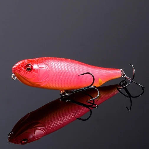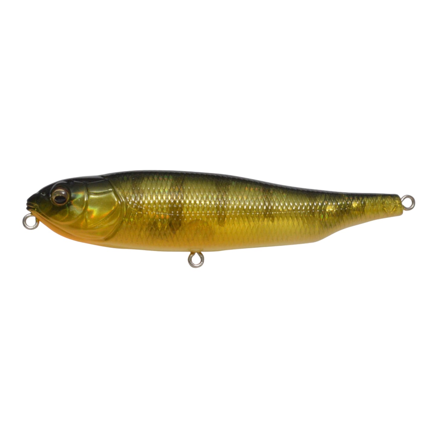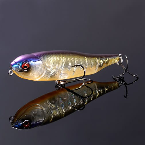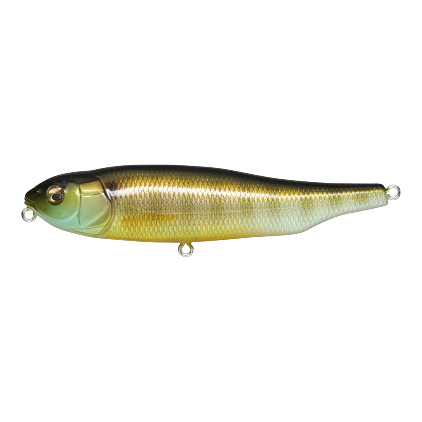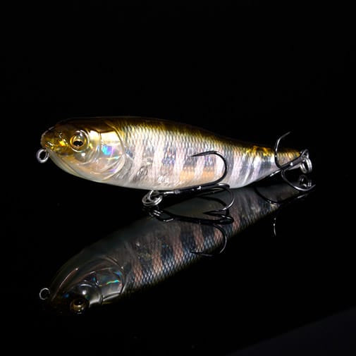 The Megabass GIANT DOG-X’s realistic profile is paired with a unique sharp side-to-side, roll-walking action that will draw vicious strikes in the toughest slick-calm conditions. Featuring Megabass’ original SIDE STEPPING BALANCER SYSTEM (PAT.), GIANT DOG-X incorporates a lateral tungsten balancer that moves left/right for sharper turns, making crisp dog-walking action accessible to all. This patented system also powers the uniquely sharp roll-walking action of the Megabass GIANT DOG-X.