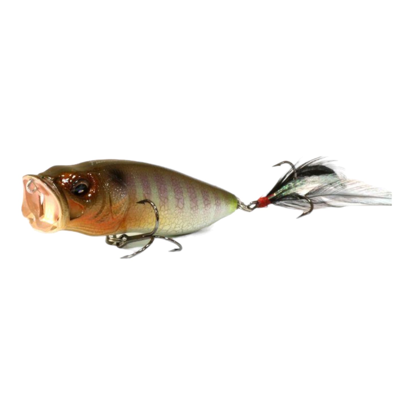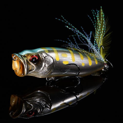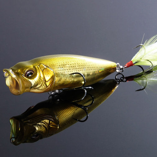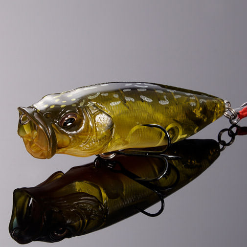 Based on a Yuki Ito hand-carved original, the Megabass PopMax topwater lure ups the ante of the well-respected Megabass Pop-X with a larger body and redesigned gill-system. The PopMax features a unique gill system that consists of six water intakes and a water chamber, creating life-like bubbles and chugging-action. The intakes channel water through the gills and out to the sides, creating a unique splashing/chugging action on the surface, while two intakes channel water into the internal chamber and out below the PopMax, generating enticing bubbles and disturbance that will catch the attention of fish.