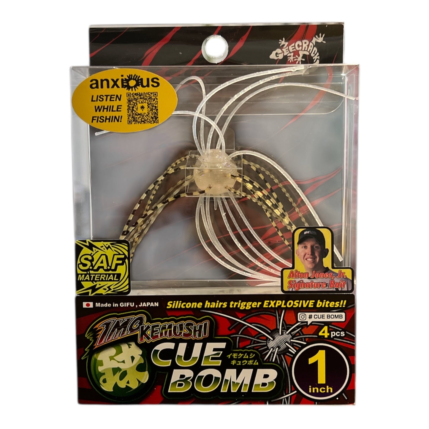 Whether rigged for drop shot or weightless, its natural color palette and intriguing size options ensure versatility for a variety of high-pressure fishing situations. An excellent addition to Alton Jones Jr. signature lineup, the Geecrack Imo Kemushi Cue Bomb will get finicky fish to cooperate and turn your toughest outings on the water into days you’ll remember.