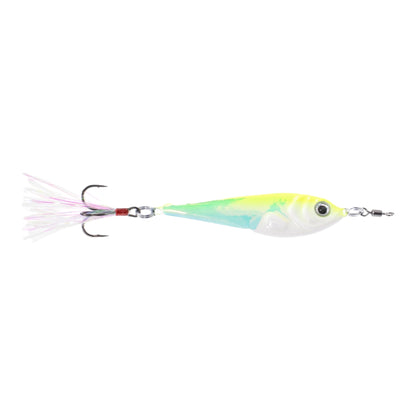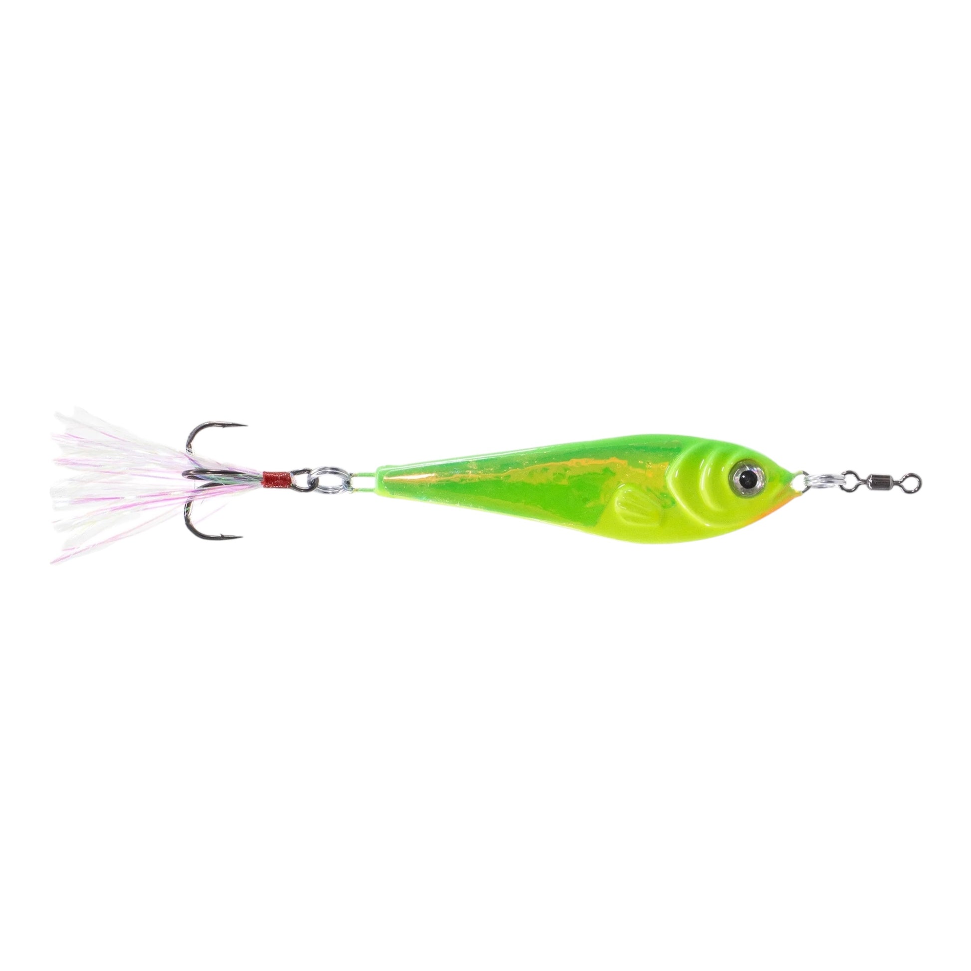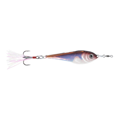 Revamped with Spro ball-bearing swivels and a razor-sharp Decoy-tied treble hook, the Nichols Duh Spoons add premium components to the classic Blade Runner Duh jigging spoon shapes and color patterns. Covered with a detailed scaling pattern and realistic 3-D eyes for added attraction, the Duh Spoon is a highly versatile lure that covers a wide range of species and applications.