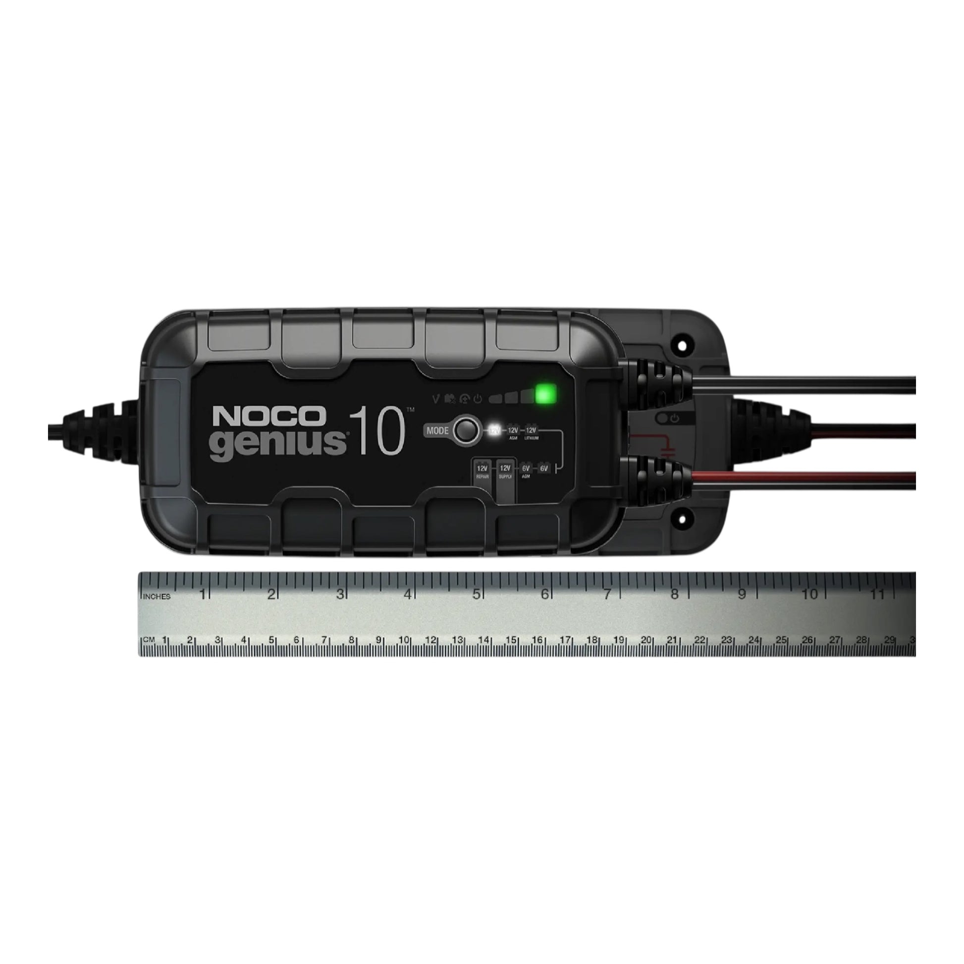 Compact, yet powerful battery charger. A mix of electrical engineering and industrial design pack a powerful battery charger into a tiny footprint. The GENIUS10 uses high-frequency switch-mode technology to efficiently convert A/C power into safe D/C power for battery charging. And its onboard microcomputer precisely controls the charging to minimize power loss to create an incredibly compact form factor.