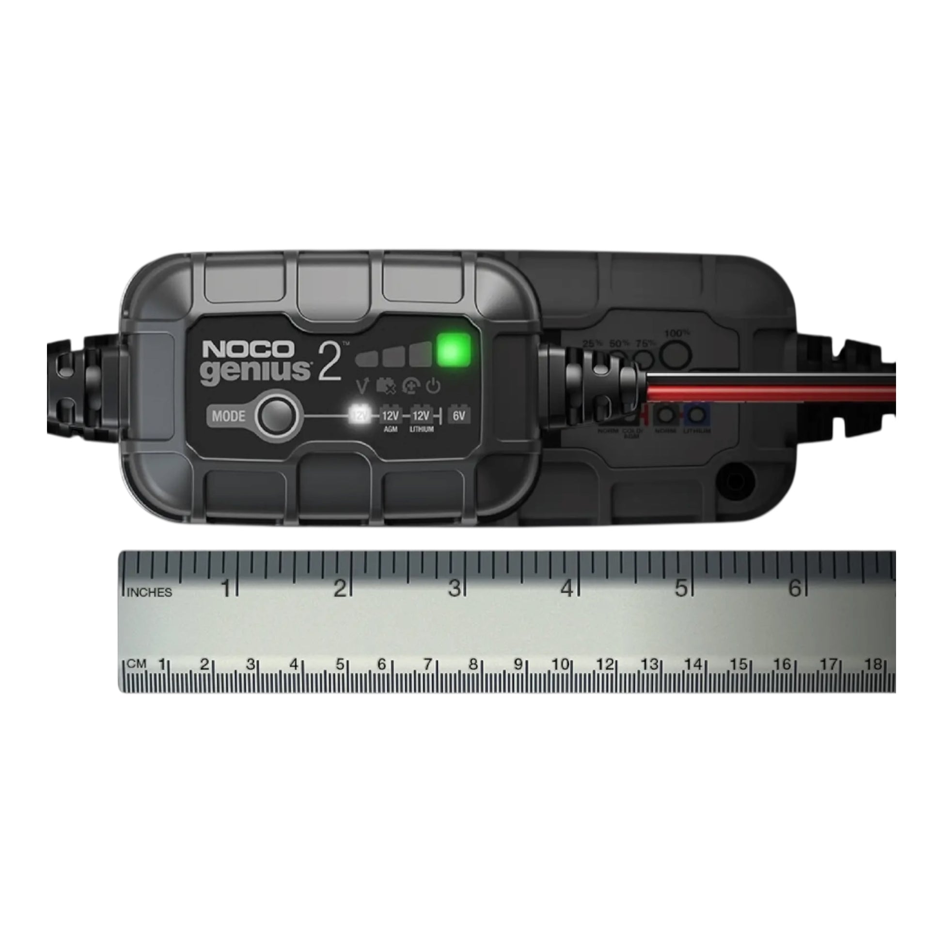 Introducing the all-new GENIUS2, one of our most powerful, highest-performing, energy-efficient, and compact chargers yet. The GENIUS2 is a 6-volt and 12-volt battery charger, battery maintainer, and battery desulfator rated at 2-amps for lead-acid automotive, marine, and deep-cycle batteries, including flooded, gel, AGM, and maintenance-free, plus lithium-ion batteries.