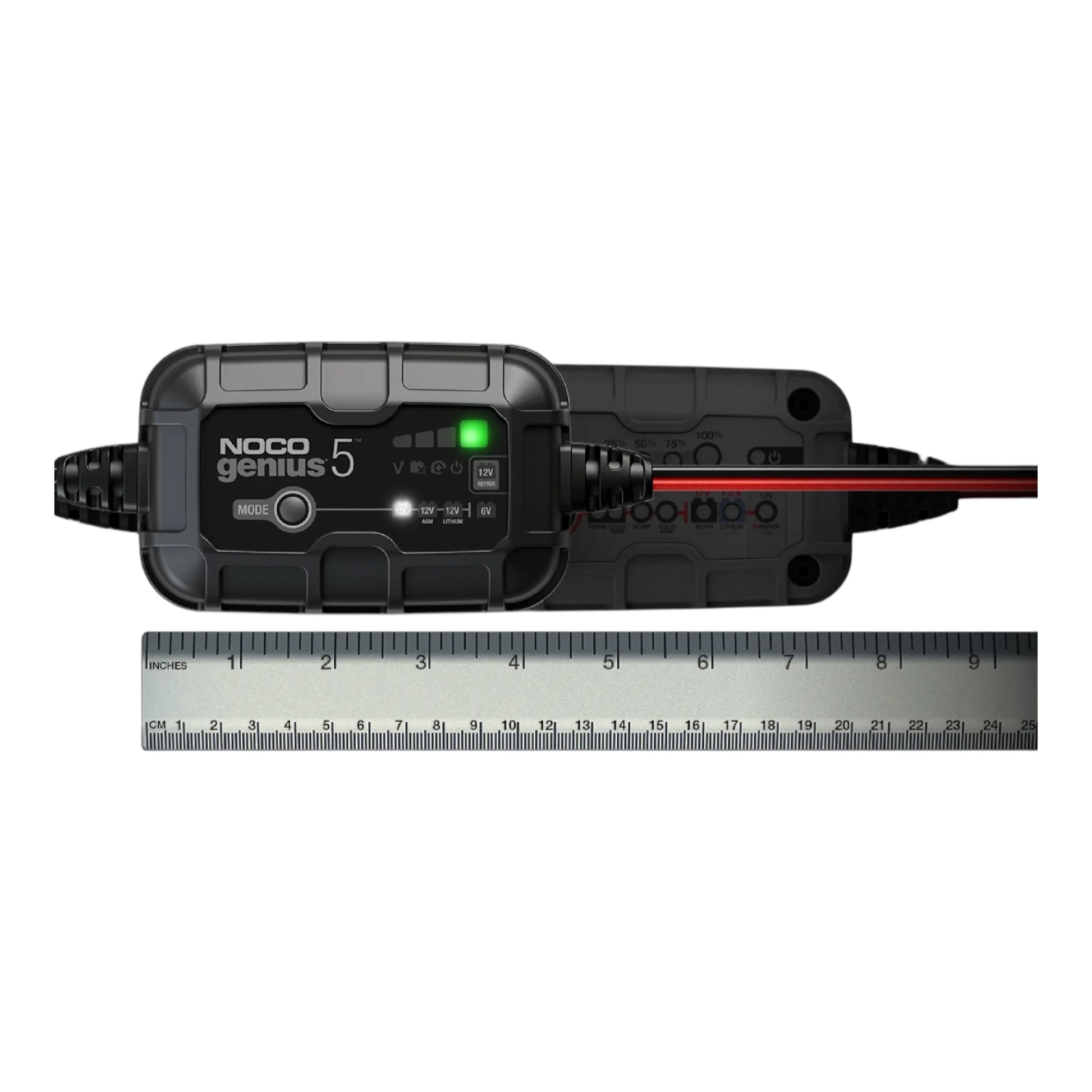 Compact, yet powerful battery charger. A mix of electrical engineering and industrial design pack a powerful battery charger into a tiny footprint. The GENIUS5 uses high-frequency switch-mode technology to efficiently convert A/C power into safe D/C power for battery charging. And its onboard microcomputer precisely controls the charging to minimize power loss to create an incredibly compact form factor.