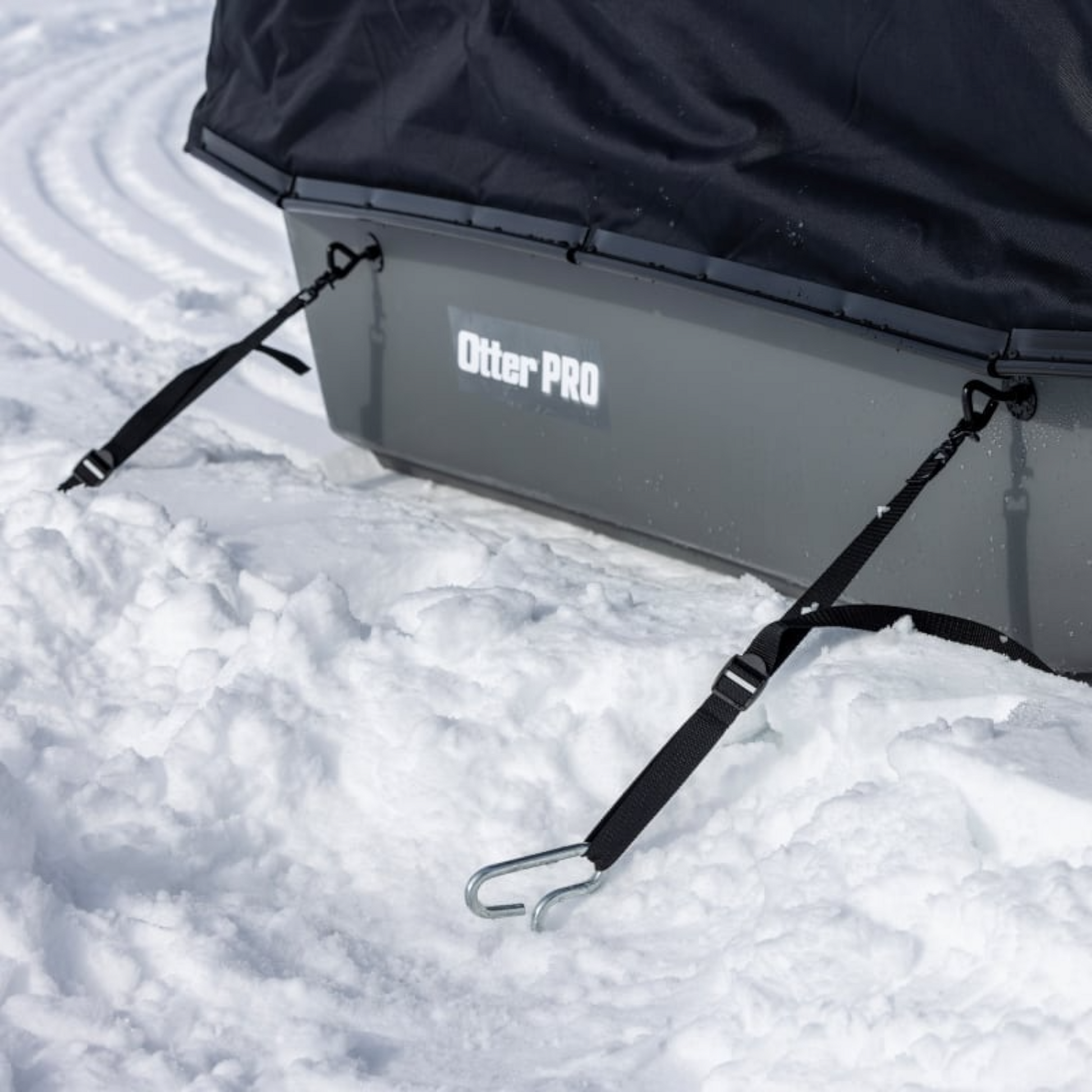 - Quick release nylon cam-buckle straps to secure sled/shelter to the ice
