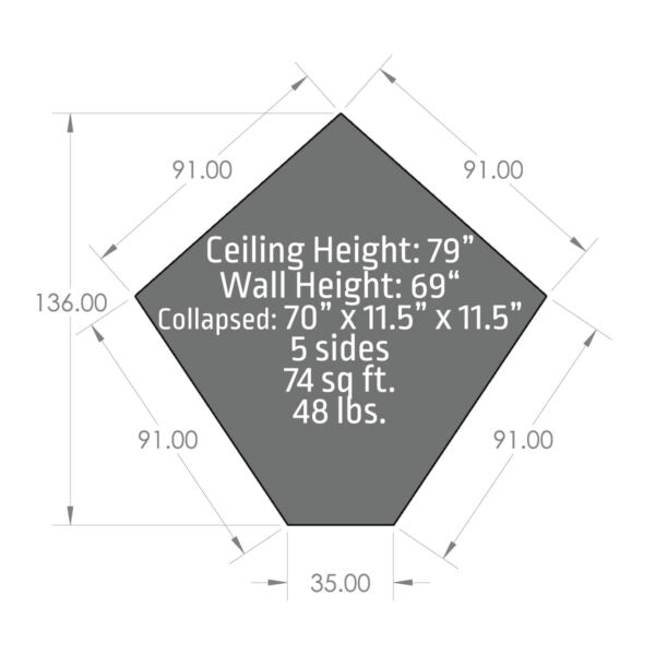 - Collapsed dims. 70″L x 11.5″H x 11.5″D
