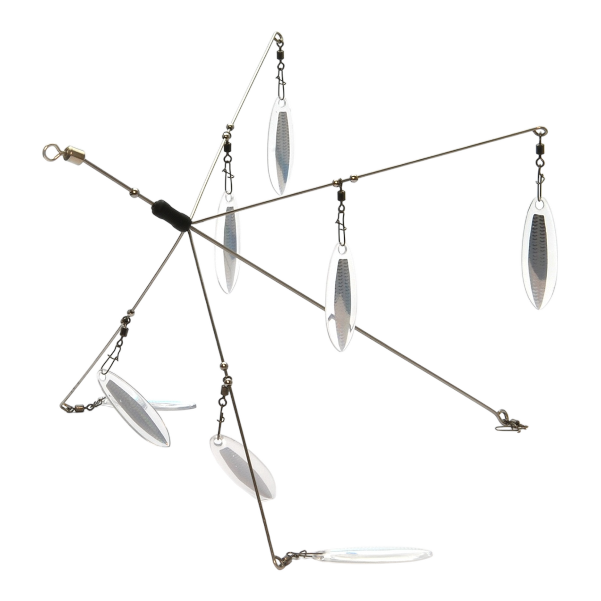 The RAID Next Level Ghost Wire series Umbrella Rigs are equipped with lightweight resin blades on all wires other than the main arm. The blades rotate quickly and even at dead slow, making it easier to maintain a horizontal posture similar to that of a swimming fish. In addition, the unique "transparency" of resin realizes a glossiness that can be mistaken for a school of small baitfish.