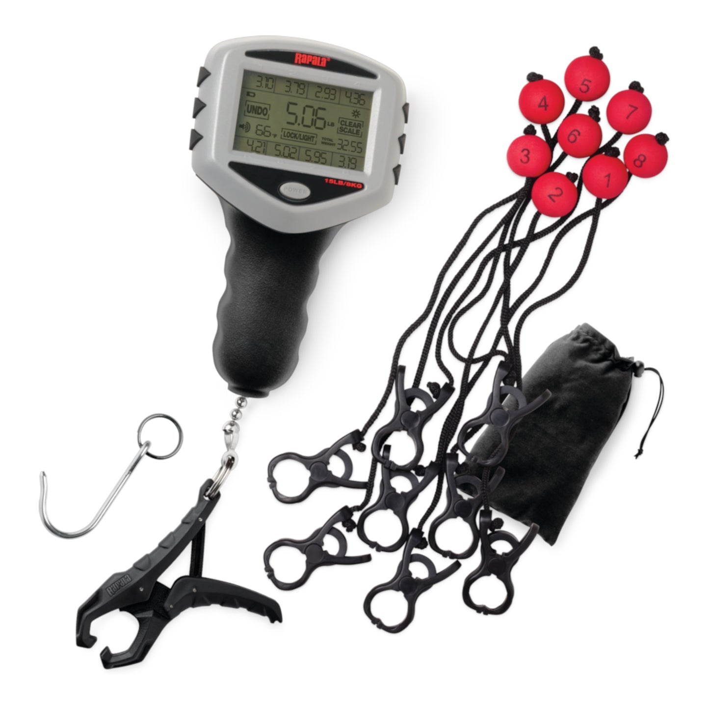 TOURNAMENT MODEL features a 15lb. digital scale, plus an eight-piece culling system that allows easy management of your catch. Quickly record and determine the position of current catch in your weight total. Culling system permits easy identification of fish to be released for maximum total weight. Includes storage bag with sewn in instructions.