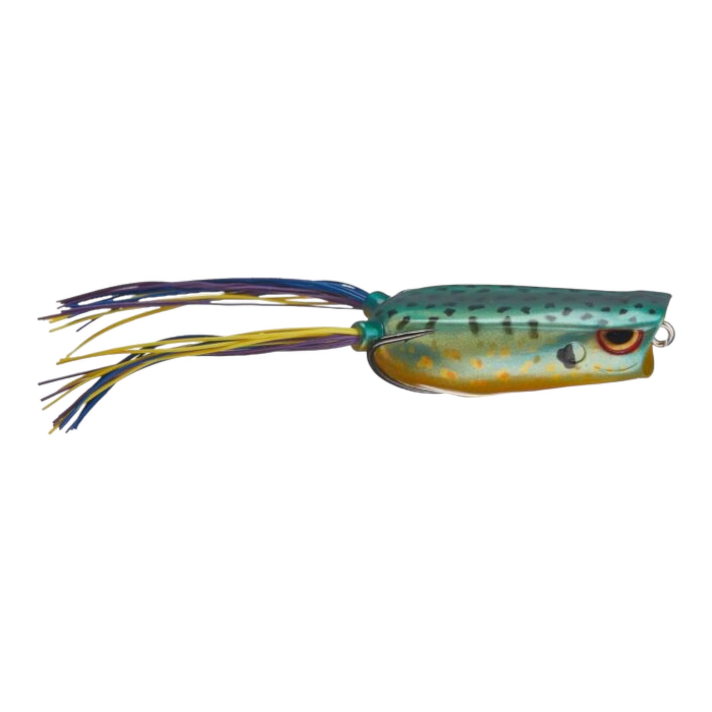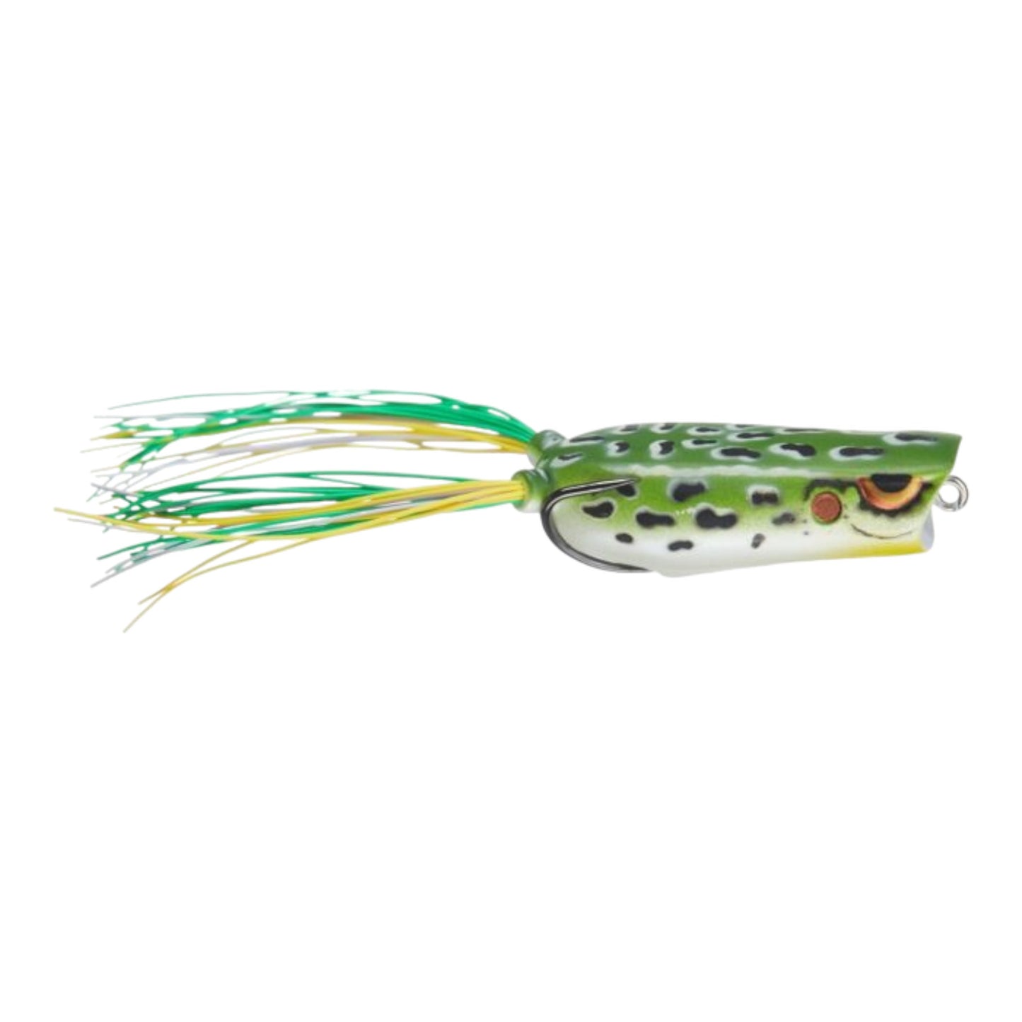 Use it to walk-the-dog, pop it or chug it, the Bronzeye Poppin' Frog casts like a rocket and is weighted to land upright every time. The live rubber legs can also be cut down to further manipulate the frog's action. The Bronzeye Popper also comes equipped with specially designed 3/0 Gamakatsu Hooks that fit the bait perfectly for solid hook ups. When the frog bite is on, the Spro Bronzeye Poppin' Frog a great counterpart to the original