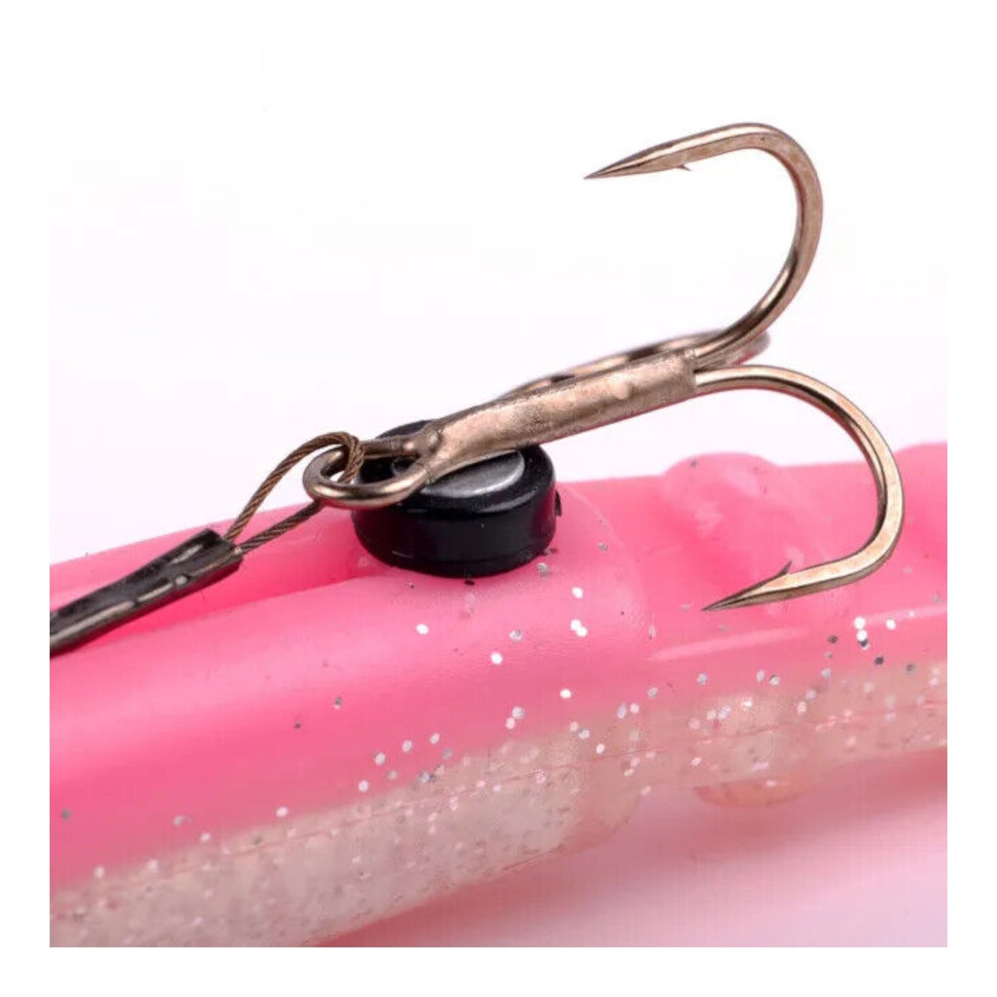 Use the SPRO Soft Bait Magnet Hook Keepers to secure treble hooks and harnesses in soft plastic swimbaits to help prevent snagging. Magnets have a spiral wire that threads into soft plastic baits so that loose hanging hooks can be secured in place while being casted and retrieved but are easily released after the fish comes into contact with the hook.