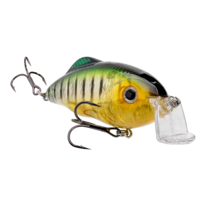 The Hybrid Hunter features a fat-bodied, flat-sided shape with a unique “L-Shaped” 90-degree bill. Combined, these features create a hard thumping, exaggerated hunting action with an extremely loud rattle that causes fish to strike with a vengeance.