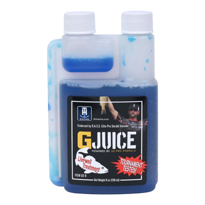 G-Juice - formerly known as U2 Pro Formula - was developed from over 15 years of research spent in the bait fish, fish transporting, and sport fishing industries. GJuice is not only a convenient liquid, but also a single phase, full-function water conditioner for use in freshwater and saltwater. GJuice should be used when conditioning water entering the livewell, bait tanks, minnow buckets, and in fish transport situations