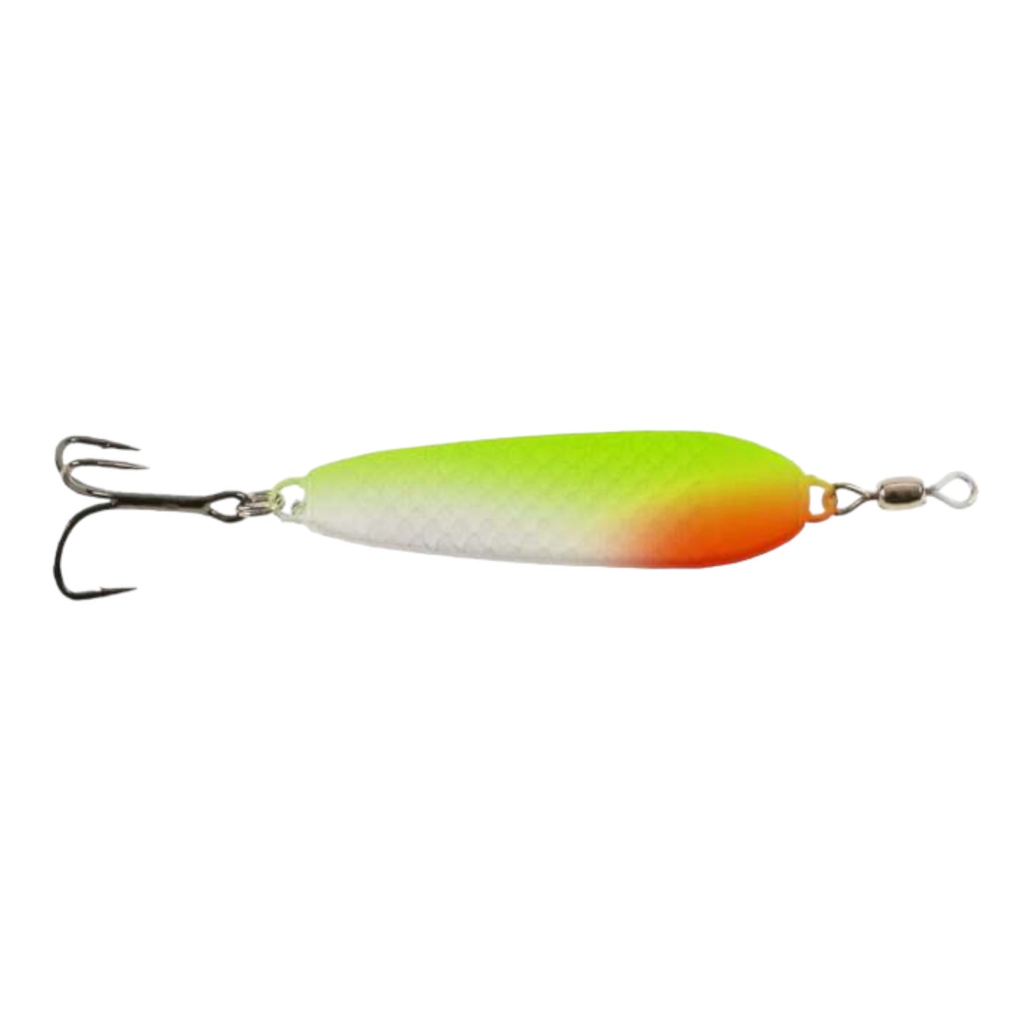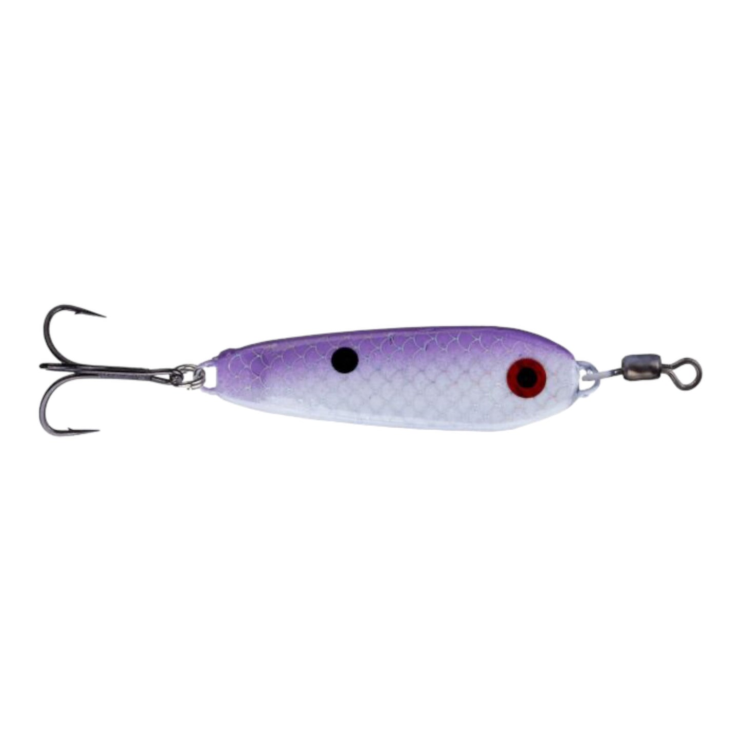 The Jigging Spoon has a hammered finish for irresistible reflection characteristics and the built in swivel eliminates line twists and is equipped with a premium EWG Gamakatsu treble hook.